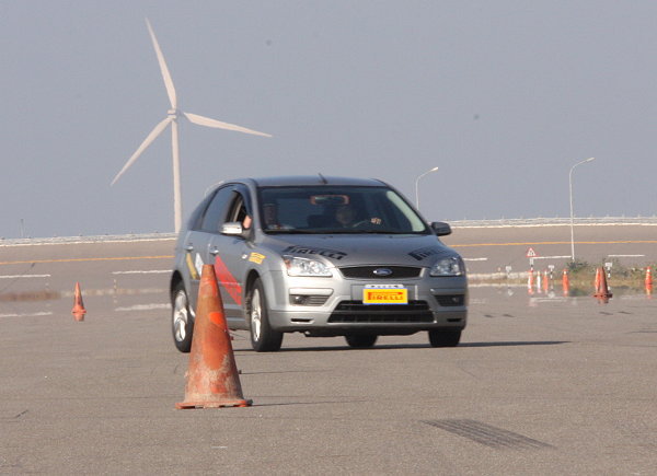 在繞錐關卡中,分別有黑色FORD Focus裝配P Zero ROSSO紅標輪胎,銀色FORD Focus裝配P7輪胎。行前,倍耐力原廠人員不厭其煩地解說幾個試駕的重點。包括駕駛姿態的正確調整、駕駛視野的重要性,與繞錐要順暢迅速的基本要領「慢進快出」,所有媒體皆有機會試駕黑色與銀色FORD Focus各一次機會,試胎場地是由往返繞錐路段與U型路段組成。