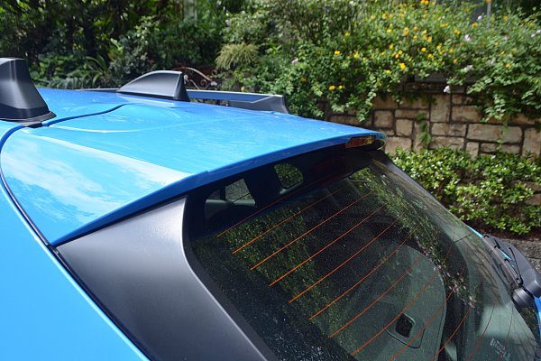 車尾構成仔細看,完全與車頭造型相呼應,具備粗獷而剛強的視覺印象,C型雙色3D立體LED燻黑尾燈組,加上和水箱護罩相呼應的六角形造型尾門鈑件,而且和車頭燈一樣呈現豎眉造型,吸睛度破表。另有較長且凹凸有致的勁風式後尾翼,後保桿下採防刮護板整合後分流器。也多了幾分跑格,