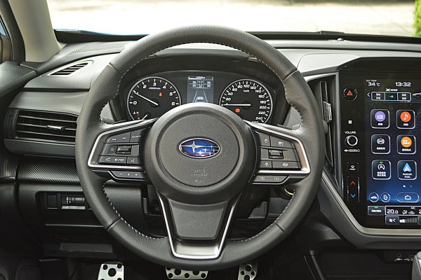 內裝採用多重材質混搭,並採多層結構設計,以結合縫線的皮革包覆,類碳纖維飾板和皮革紋塑料組合,儀表台更是採不同材質的面板層層堆疊,和外觀一樣,呈現剛強結實的視覺印象,11.6 吋盾型直列式多媒體螢幕為座艙視覺重心,強化座艙的科技感。大視野是Crosstrek的重點賣點,號稱每一扇窗都有大約一公尺高度的視野,加上A柱旁特大的三角窗,前座視野之開闊,坐在駕駛座會更能掌控車前和車側的狀況。