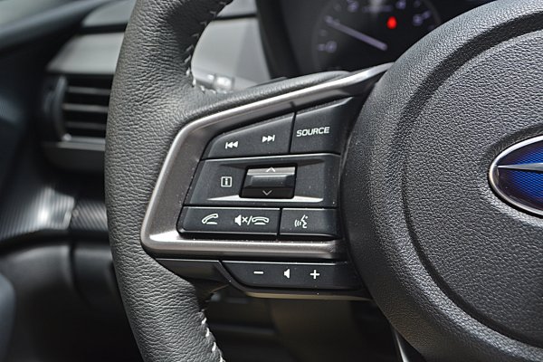 三輻式多功能方向盤設計很傳統,和家族其他成員如Forester等,式樣都差不多,中規中矩,但操控的機不差。左方是儀表顯示切換、音響控制、聲控和行動電話撥接等按鍵,右方是Eyeasight 4.0相關主動安全輔助系統功能按鍵,下方按鍵則是SI-Drive動力控制模式的切換鍵,操作順手而且很直覺。