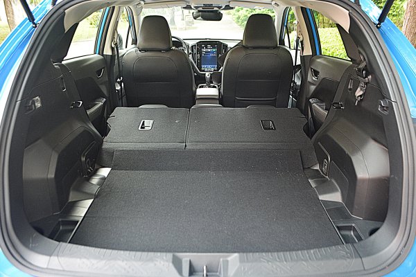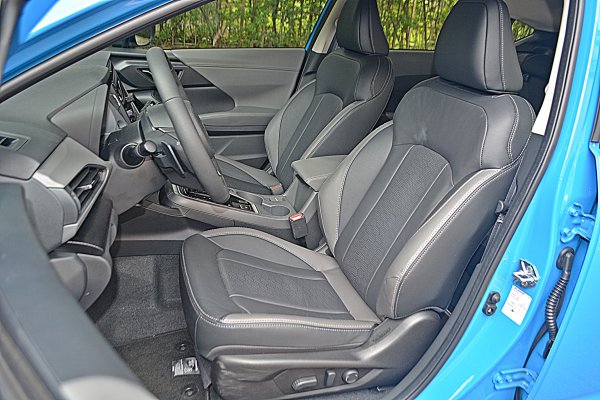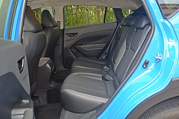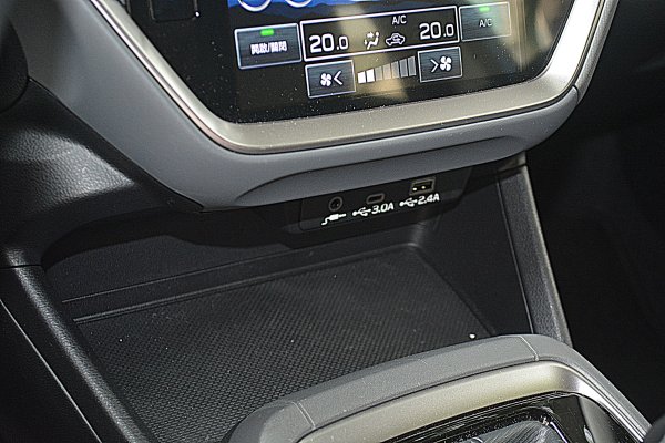 Crosstrek的座椅採用雙重皮革材質打造,座寬大舒適,駕駛座與前乘客座各有10向和8向電重可調功能,是很貼心而且實用的配置,雖是舒適華麗取向的座椅,雙前座具有相當出色的身體包覆,包覆性特好,特別是肩部的包覆,也因於飽實的充填,也帶來背部和腰線相當出色的支撐,腿部支撐也不錯。後座同樣有Type-A與Type-C USB槽各一,但沒有空調出風口的配置,以Crosstrek家庭共乘的定位,少了後座空調出風口讓人不解。前後座都有充裕的膝部空間,就小編172的身高,前後座都不會舒侷促感,頭壓空間很開闊。唯後座底板因傳動軸隆起較高,三人共乘舒適會打些折扣。