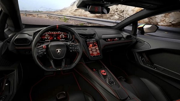 在車內,儀表板上有三個顯示螢幕,兩個供駕駛使用(一個 是12.3 吋儀表板,另一個是一中控資訊娛樂8.4 吋系統螢幕的螢幕),一個直接位於乘客前方的 9.1 吋顯示器。該軟體還可以連接到可選配的Lambirghini視覺單元(LVU)攝影機,以提供注重安全的行車記錄器和Lambirghini所說的「記憶記錄器」(memories recorder),將視訊與圈數遙測混合在一起。