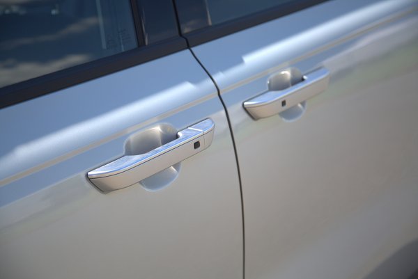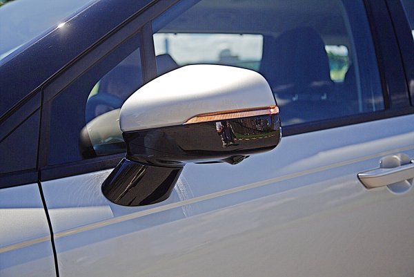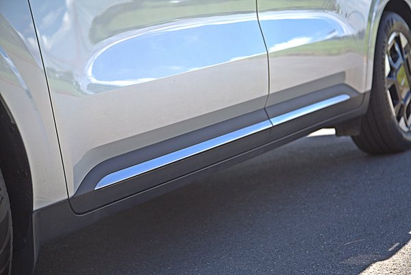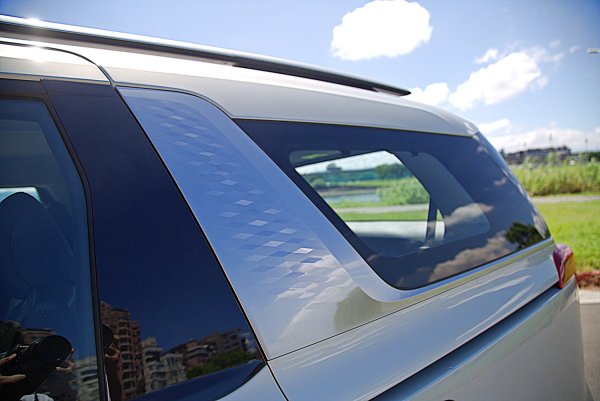 車側的輪廓像一台加長的豪華SUV,造型大致上和改款前相同,採海島式車頂(Island Roof)的設計,以黑色的A柱和B柱,撐起與車身同色的車頂,營造出一種漂浮的視覺效果,而從頭燈延伸至尾燈的水平腰線,加上輪拱立體的摺線和車門鈑件內凹,營造明暗起伏變化,增添動感。車外後視鏡也採亮黑和車身同色烤漆、採上下雙色塗裝。而電動側滑門是中高階車型的標配,加上低車高,方便乘客上下車,而沒有SUV底板過高而上車比較辛苦的問題。