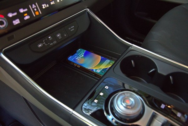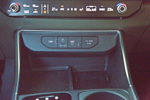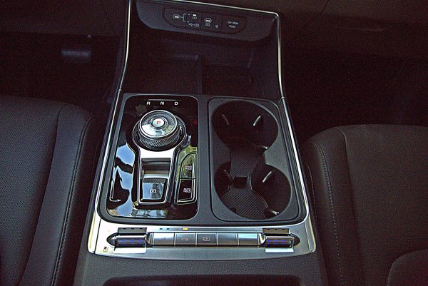 中央鞍座配置既精緻華麗而且機能性極佳,功能比照7人座車型,中控具備一鍵切換觸控介面,因此讓中控下方騰出更多置物與收納空間,中央鞍座最前方的空間可以擺放兩隻手機,同時右側為手機無線充電板。上方有2個Type-C的 USB插槽加上1個12V電源插孔。鞍座中段右側有雙置杯架,左側為結合線換檔技術的的E-SHIFT電子旋鈕排檔系統,加上駕模模式選擇和Auto_Hold按鍵,鞍座最下方有一排常用的功能按鍵,包括雙前座通風/加熱、雷達警示、環艙監視攝影等系統。