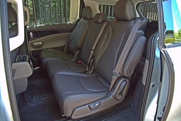 此外,Signature車型後車門還提供感應式開啟功能,帶著車鑰匙靠近滑門中央,車門便會自動開啟,VIP上下車或親子共乘都十分方便輕鬆。與七人座車型一樣,第二排座椅下方有滑軌,三張座椅都可以前後滑移,並且各自具備椅背傾倒機能,第二排中央座椅前傾翻摺設計,椅背可化身飲料杯架扶手或會議桌。外側座椅也附有一鍵傾倒開關方便第三排乘客進出;此外,比照7人座,Carnival二、三排座椅也全數都標配ISO-FIX兒童安全座椅固定裝置,而2、3排座椅兩都有手動式遮陽簾,讓後座擁有私密性。