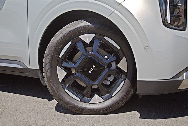 和7人車型相同,輪圈配備19吋齒輪造型黑白雙色塗裝低風阻鋁圈,配胎同樣是馬牌235/55 R19的CrossContact RX休旅車專用胎,此胎以舒適和低胎噪兩大特色見長。