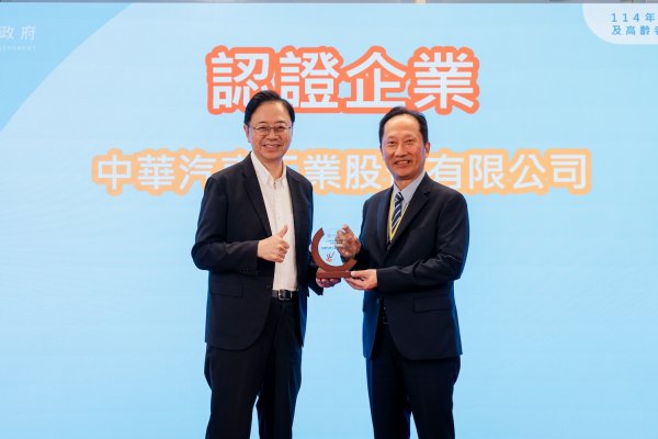 面對人口高齡化與職場多元化的社會趨勢,中華汽車持續推動多元共融的職場環境,落實中高齡員工的就業支持與關懷,2025年榮獲桃園市政府「中高齡及高齡者友善企業認證」,此項肯定延續2024年勞動部「壯世代就業菁采獎」的成果,成為汽車業首家獲此殊榮的企業,展現中華汽車持續打造世代共融、共創價值職場的堅定承諾。