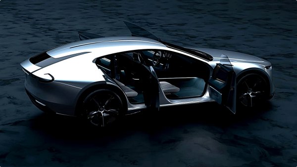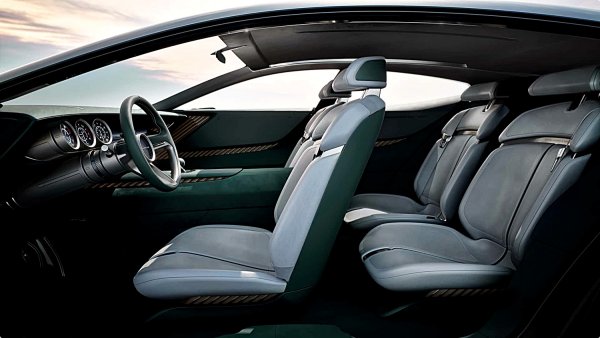車側展現強烈的肌肉感,輪廓為經典的斜背式轎跑車,側看似雙門轎跑,因為B柱採黑化設計,被隱藏在車窗玻璃內,實際上,它有四扇車門。車尾則有一個風格化的後擋風玻璃和平整化的尾燈,看起來嵌入車身鈑件之中。