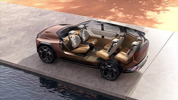 內裝採用三排六座配置,底板完全平坦,前排座椅可以向後傾,構成空間寬敞且舒適的起居室空間。儀表台設計簡潔,與座椅一樣同採用相同的材料的包覆。儀表即上方橫亙著三個顯示螢幕,第四個顯示螢幕則安裝這台充滿未來科技感的三輻式方向盤上。中控台上的旋轉撥盤可讓您選擇駕駛模式(包括Eco、Auto、Tarmac、Gravel、Snow、Mud、Power),但 結合AI的語音助理則可以針對行車條件,幫車主推薦最合適的駕駛模式選項。