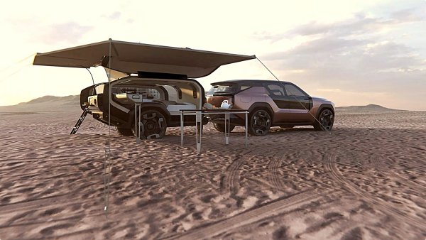 該概念車匹配的淚滴造型的尾車,該尾車具有看似堅固耐操的姿態,加上大尺寸規格的輪胎和寬裕的離地間隙。車內還有一張大號雙人床、多樣化的儲物格、一個小廚房、帶有科幻感的氣氛照明,甚至還有一個淋浴間。