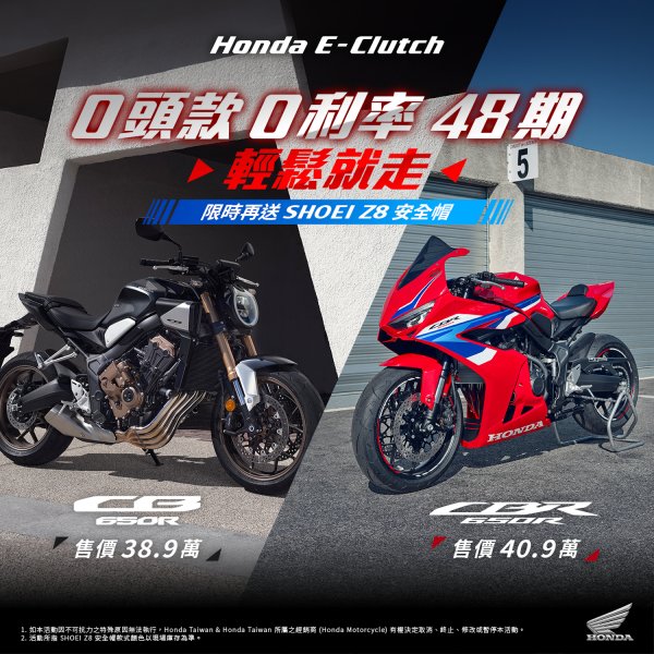 訂購CB650R E-Clutch、CBR650R E-Clutch享0頭款 48期 0利率