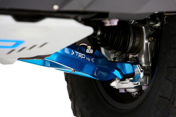 TOYOTA為強化 H2-Overlander 的底盤和懸吊,特別安裝 TRD 的鋼坯長行程套件,其中包括 TRD 團隊從其 Tundra 懸吊開發計劃中提取的 Fox 2.5 Performance Elite 系列避震器。前煞車也是從 Tundra 上取材而來,而 17吋的 Method Race輪圈,匹配剛強的 35吋 General Grabber 全地形越野胎。