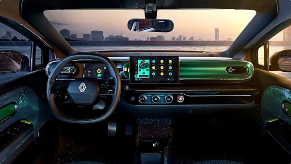 網路上流傳的這些外洩的官方照,還讓我們第一次看到了 Twingo 的內裝,它的鋪陳也和Twingo概念車十分相似。座艙內有兩個相當大的螢幕、並有一排實體控制按鍵旋鈕、一個特大的危險警示燈按鍵(這也是取材自第1代Twingo的元素),儀表台上亮黃的飾板,取代原來的黑色飾板,增加車室內的彩度。