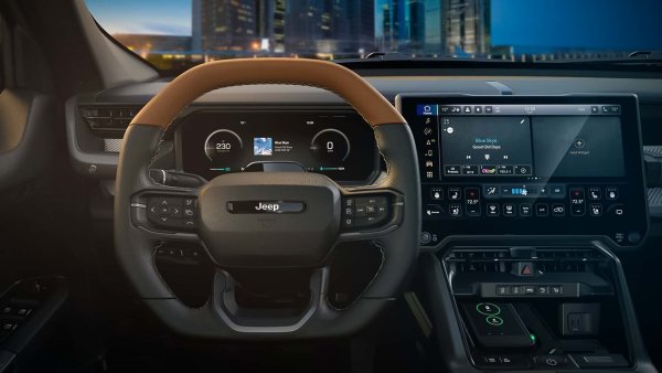 車內配備一對垂直看列的螢幕,12.3吋數位儀表與14.5吋中控資訊娛樂螢幕,搭載Uconnect 5多媒體系統。Recon 中控沒有實體空調按鈕,改為數位 HVAC 控制。Recon 配備高級 Alpine 音響系統,座椅下方設有喇叭。第二排座椅放倒後,Recon 提供高達1866公升的行李廂置物空間。Jeep 設計了前行李廂,擁有85公升的前行李廂置物空間,以容納隨身行李。