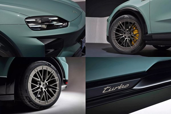 車側設計以無框車門和車門表面吸睛的折線為特色 。側裙具有鮮明的立體感,Cayenne Electric 採用金屬火山灰色(Volcano Grey Metallic )烤漆,Cayenne Turbo Electric 則採用高光澤黑色烤漆。這種雙色概念突顯了車輛的運動比例。專屬的輪拱飾條強調其越野特性。車尾的醒目細節,例如帶有獨特 3D 效果和動畫圖形的貫穿式燈條,以及自發光的「PORSCHE」字樣,都強調了現代設計語彙。Cayenne Turbo Electric 採用了獨家渦輪黑色(Turbonite)的諸多對比元素,包括保時捷徽飾、鋁圈表面和側窗飾條 。燈條和「PORSCHE」字樣上則點綴著精緻的渦輪黑色(Turbonite)裝飾 。