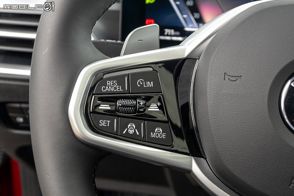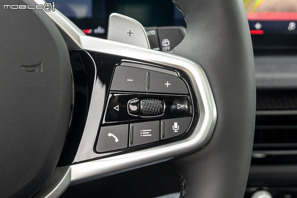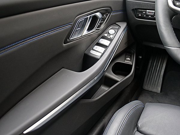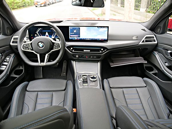 全車系全面配備豪華型三區恆溫空調、環艙氣氛燈,夜店般的奢華感不言可喻,而我們試駕的330i M Sport ,和320i M Sport都是配備三輻式真皮包覆多功能方向盤,雖然看起來普通,卻有很出色的握感,Nappa皮革包覆也帶來溫潤的質感,同時有面積較大而方便在激烈操駕時按壓換檔的換檔撥片,方向盤左右一如過往,有結合滾輪和功能按鍵 ,左為駕駛安全輔助功能鍵,右是行動通訊和聲控等按鍵。
