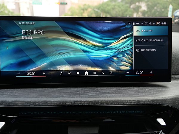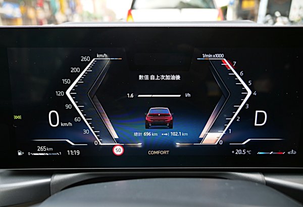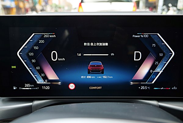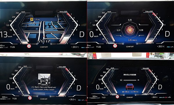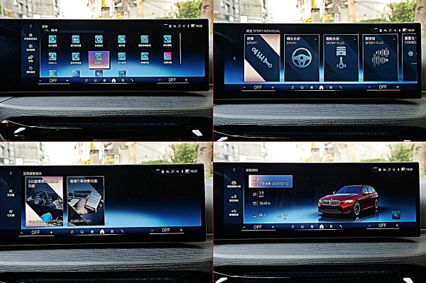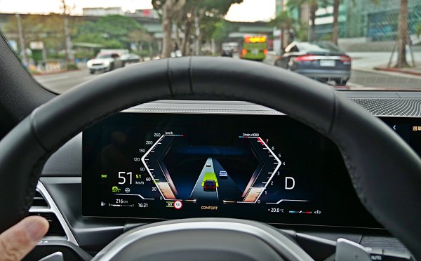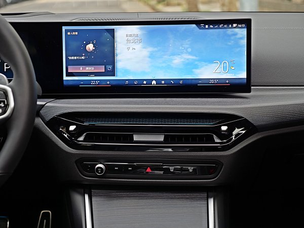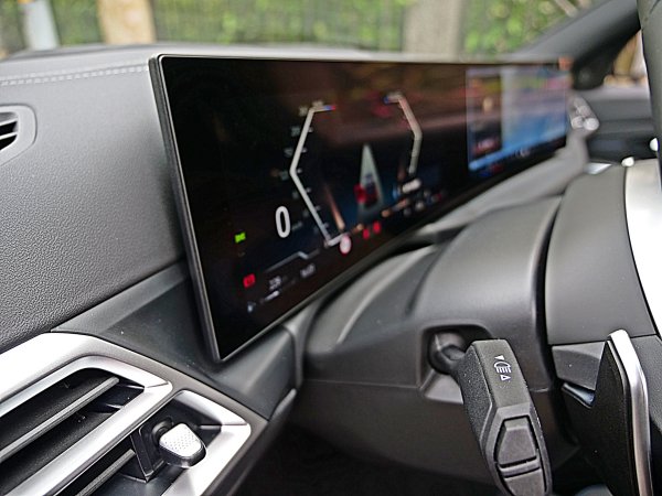 座艙科技化升級是改款的重點,儀表台配備懸浮式曲面雙螢幕, 含12.3吋虛擬數位儀表,搭配14.9吋中控觸控螢幕。全新的數位儀表,比照家族2系列或iX,為全彩高畫質全數位虛擬式儀表,不僅養眼,而且顯示功能超強,它有多種版面可供選擇,也能依車輛行車模式切換主題,方向盤上的齒輪符號及滾輪可分別調整行車資訊的顯示內容、版面主題及抬頭顯示器。儀表的圖像界面,和BMW現行車款的儀表設計相仿,但更加簡約,儀表圖像呈現鑽石造型,兩邊各有車速和電量表,中央是多功能顯示區,可以個人駕馭需求設定,相關行車資訊如精簡模式的時速表、旅程資料、輔助駕駛道路模擬畫面、路徑預覽、地圖及多媒體,以及G值變化等內容,簡單易懂,不需太多學習就能直覺操作。