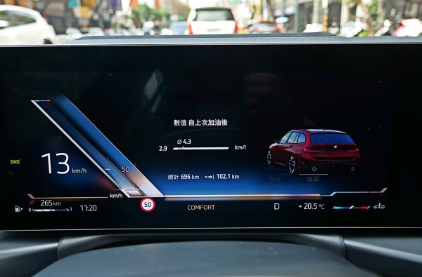 此行試駕的330i Touring M Sport帳面上擁有最大馬力245ps/4500rpm,最大扭力400Nm/1600rpm(40.8公斤米),按官方測試,其時速0到100公里加速僅僅只要6.1秒。而且最大扭力分布在1600到4000rpm,扭力高原夠寬廣,搭配8速手自排,齒比綿密,切換檔位十分俐落,雖然加速衝刺沒有340 車型的火爆,但從踩踏油門的瞬間,一直到中後段加速,都表現得十分活潑有勁。