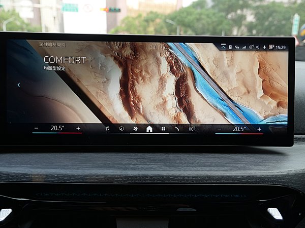 追隨著BMW家族成員的腳步,中控台也終於換上BMW最新的iDrive 8.5使用者介面,它有著和智慧手機相似且充滿科技美學的圖像式設計使用者介面,使用上更加直覺,如果有人嫌此界面操作不順或不夠直覺,那有可能是自己的手機太老舊,該換手機了。而此中控界面如同智慧手機,也提供了專屬個性化與客製化設定功能。新增的Quick Select快捷選單的虛擬按鍵,常用功能可透過選單快速操作,使用便利性大幅提升。