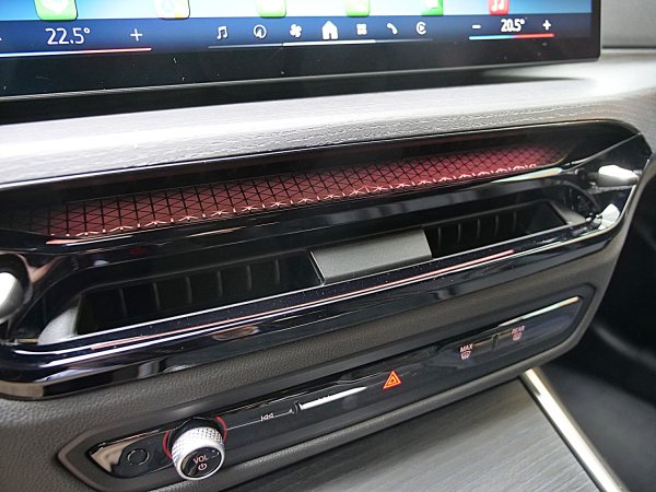 中控以下的空調面板和鞍座的控制面板,幾乎和改款前一致,中控下方保持簡約多功的恆溫空調和音響音量實體按鍵與旋鈕等實用的配置,但空調出風口做了進化,出風口處有新的菱格紋飾板結合可變換色調的氣氛照明,視覺上顯得更有時尚感,出風口也換上新的調整撥桿,調整風策量與風向手指輕推即可,操作更為輕鬆。3 系列沒有實體的空調開關按鍵和該系統的調控設定,完全整合在中控螢幕上,利用手指操作。物理氣候開關;該系統完全整合在中控觸控螢幕裡,或透過語音控制進行操作。