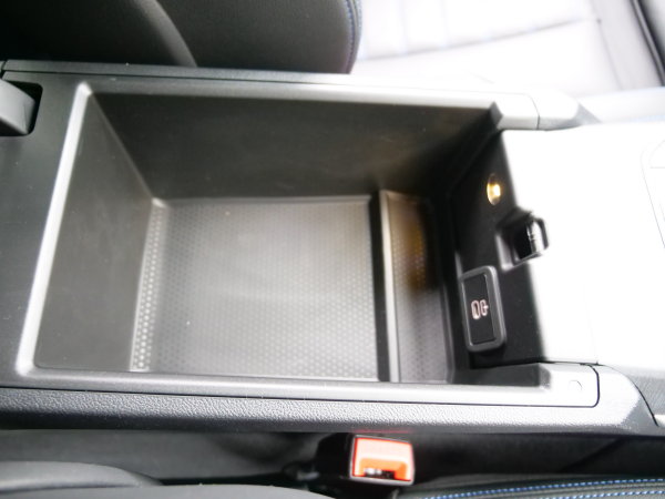 寬大的扶手提供極佳的手靠功能,下方的置物箱雖不深,但夠寬且長,置物也很方便,同時不嫌其多、內置兩個USB插槽,使用行動裝置超方便,置物箱內也內建輔助照明。車內也有一些十分便利的置物收納功能,除中央扶手置物箱,中央鞍座有雙置杯架與置物盒,還有深度充裕的手套箱和置物箱,門側也有整合置杯座的置物格,收納功能相當好。