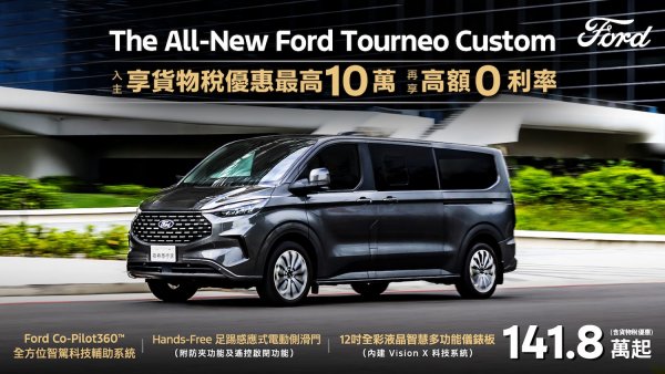 歲末壓軸登場!福特六和加碼推出多款熱門車型的限時優惠方案!自2025年12月1日起至12月31日止,至全台Ford展示中心試駕任一車款,即可獲得7-11百元禮物卡,入主週週抽北歐之旅來回機票,於展示間拍照打卡上傳Ford(TW)官方臉書粉絲團指定貼文,再抽Apple HomePod Mini。此外,福特六和積極響應政府減稅政策,活動期間入主The All-New Ford Kuga 1.5T享力挺價83.9萬起(含舊換新),其中包含5萬元力挺購車金、高額0利率及5年原廠保固,1.5T Active再加碼3萬元配件金;為感謝萬名車主一路支持,New Ford Ranger Wildtrak限時推出感恩回饋價154.8萬(含舊換新),再享百萬0利率;福特六和歲末再加碼多重優惠,邀請消費者把握年終入手時機,迎接新年開啟屬於自己的夢想旅程!