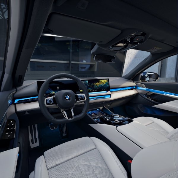 旗艦級座艙設計思維在全新年式 BMW 5 系列Sedan豪華房車以及5系列Touring豪華旅行車上獲得最完整的體現,座艙以懸浮式曲面螢幕為視覺核心,結合環抱車室的 BMW 座艙環繞光幕、頂級水晶中控套件、隱藏式冷氣出風口與大幅簡化的實體按鍵配置,構築出簡潔前衛且富含科技感的沉浸式數位座艙,全面詮釋新世代豪華的設計語彙。