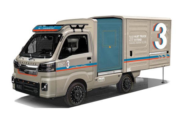 另一款以Hijet為基礎而改造的Van Extend3廂式概念車,則呈現出較低調的設計風格。這款車整體風格內斂,配備可滑動式車身後部延伸裝置,停車時可增加載貨空間。它還配備了防脫圈輪圈、厚實的輪胎以及實用的車頂行李架。