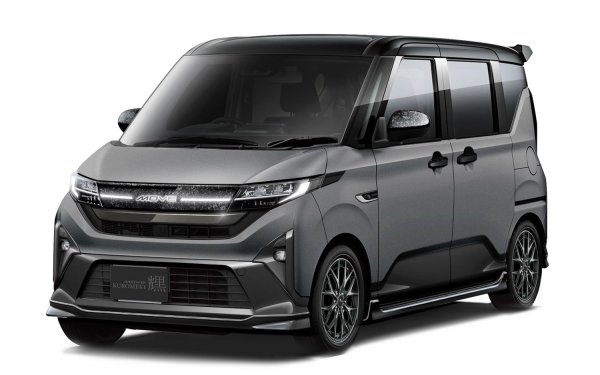 這款車的設計靈感源自TOYOTA的Vellfire等大型MPV ,但只是將尺寸縮小至輕型MPV級別,最終呈現近乎超現實的效果。前臉幾乎完全由格柵構成,兩側是纖細的垂直日行燈和低矮的前擾流翼,進一步強化車身在視覺上更加寬闊。其他升級包括全新的車後裝飾條、新的輪圈、側裙、後擾流翼,以及採用灰色和紫色內飾的客制化內裝。