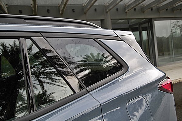 此外,油電車型和汽油車型在外觀上,各自追加不同色調視覺套件,強化視覺的豐富性和精緻質感,試駕的油電驚艷版,採黑化套件,用於窗框、車頂行李架、尾門上的Terrtory車型銘牌和車尾銘板,另有鈦晶灰套件,包含車頭尾下護板、水箱護罩、車側飾板和保桿飾條。而汽油版有別於油電車型,黑化套件包括水箱護罩和保桿飾條,另有鍜面銀套件,包含前下護板、窗框、車側飾板、車頂行李架。
