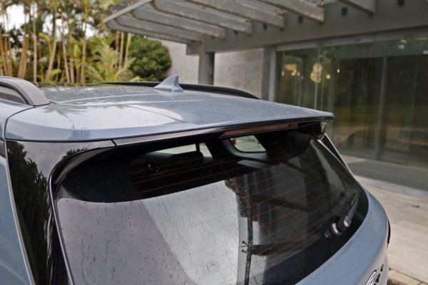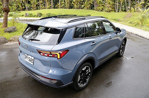車尾也不平淡,凹凸有致,層次豐富,3D立體LED尾動態燈也很有看頭,三點式燈形按官方說法,是比照福特Mustang三柱式流光的經典設計,只不過尾燈並未比照車頭,少了LED光條的貫穿式設計。而油電車型車頂還配置立體高頂式高頂式鎮黑色塗裝的行李架。