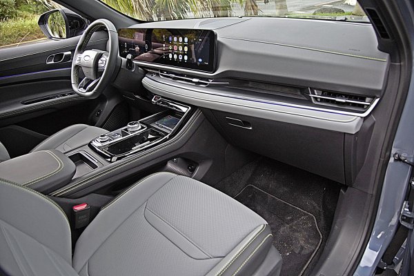 中控台下方的空間為Qi智慧手機無線充電板,並有手機固定框,可防止手機滑動。充電板前方有功率高達66W 的Type-C快充插槽和一個Type-A插槽,Type-C的大功率,讓它可支援筆電充電,這項功能讓Territory比絕大多數同級車更能滿足人們的數位行動生活的需求。而充電板上方有一排全車僅存少數的實體控制按鍵,主要用於空調操作,包括風量、車窗除霧等,是務實的設計配置。