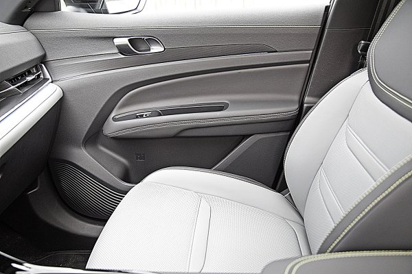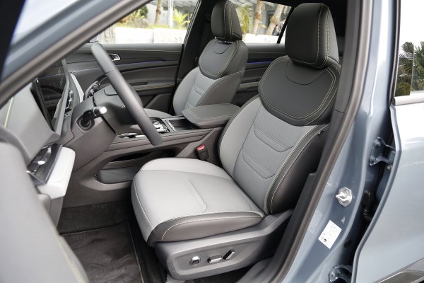 真皮座椅採用質感相當不錯的皮革,同時座椅版型也特別強化它的肩部和腿部兩側的側翼包覆,座椅的支撐性也不錯,整體乘坐的舒適性比同級車好很多,而且雙前座都具備電動可調,駕駛座為10向調整,副駕駛座則是可4向調整。並具備可四段風量調整的通風功能,對於台灣買家來說,必定十分受用。