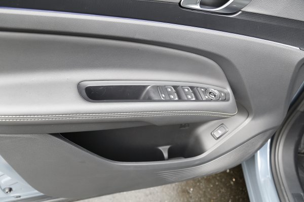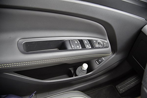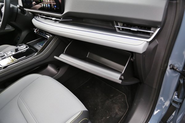 除此之外,前座還有更多的收納機能,是同車所不及的,像是向上V字型開口的前座手套箱,有充裕的置物空間,套箱箱開口上方有凹槽可放手機和其他小物,前後座門側有前後置物空間,一是置杯架和一個不小的置物格,車門扶手也兼有放手機等小物的收納功能,車廠號稱全車至少有22個收納空間。