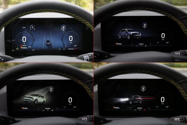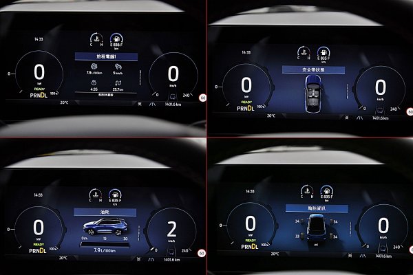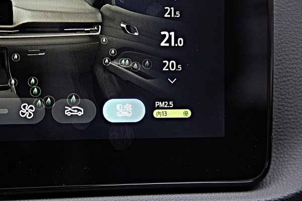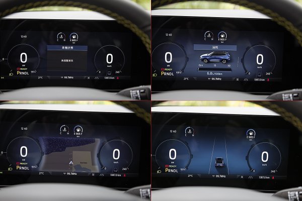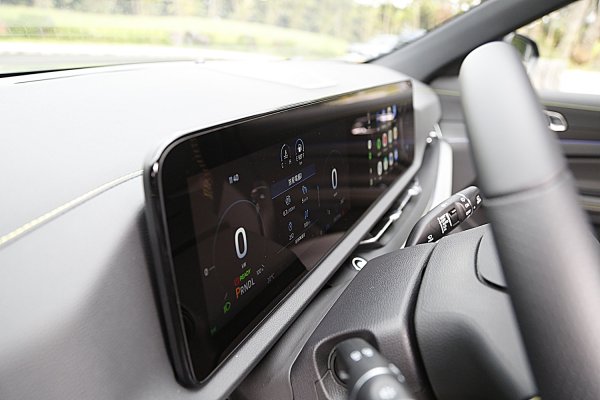12.3吋數位儀錶全彩高清顯示,提供十分完整的行車相關資訊的顯示,試駕的1.5T Per4mance Hybrid車型,儀錶板顯示和時下大多數電動車一樣,簡潔多功能,非常容易判讀各項數據,儀表採雙環式樣,左側是功率輸出狀態顯示(汽油版為引擎轉速表),右則是油量錶並兼具行駛里程資訊顯示;此外,因應切換駕駛模式時,儀錶板的顯示風格和底色也會隨著模式不同而改變。