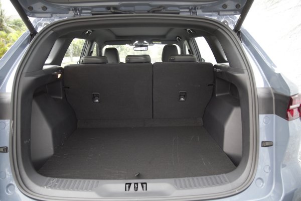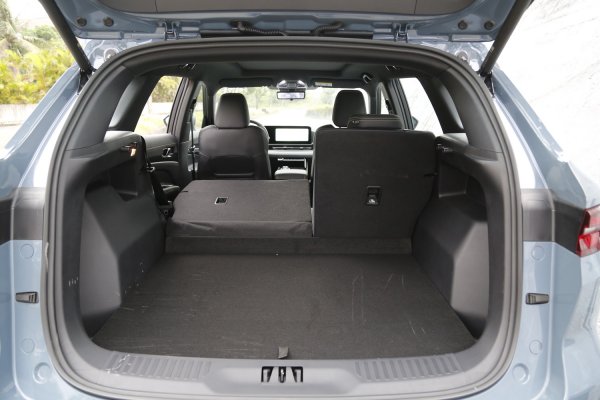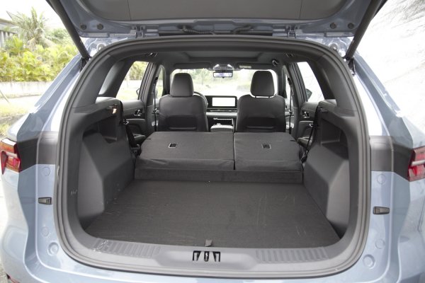 福特六和並未公布行李廂置物容積,按中國江鈴福特汽車「領睿」的數據,在五座模式下,Territory行李廂置物容積為448公升,在6/4分離式後排座椅放倒後,置物容積可擴展至1422公升。數字上並沒有比對手亮眼,但有趣的是Territory有特寬的車身,不只讓後座三人共乘舒寬敞而沒有侷促感,也讓行李廂置物機能超強,超寬的後廂開口最寬可達到1,150mm,這比競爭對手寬了不少,可豎著放進只五只大行李廂,搭配全車系標配的足踢式體感電動尾門,取置大件行李可說是十分輕鬆。不過後排座椅前傾打平,卻和行李廂底板仍有一些落差,無法構成完全平整的置物平台或是騰出一張床,有一點可惜,而行李廂底板下還有容積不小的分格式置物格,可收納急修的工具和各種小物。