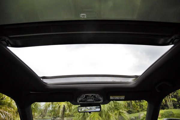 更重要的是車寬,比同級競爭車款如RAV4和TUCSON L等都多出10公分以上,加上後座底板完全平整化,所以三名成年人共乘在後座,肩部空間可說是同級車中最大的,我們試駕時請來三名壯漢示範,三人完全沒有招束感。而如果是四人同行,後座中有寬大的扶手,和坐在大型休旅車一樣舒適開闊,後座也有空碉出風口,並附USB插標。此外,Territory擁有超大全景式電動天窗,附電動遮陽板,天窗面積之大,可充分涵蓋前後座,提供極佳的採光。此外,全車系標配感應式車窗和天窗,感應雨滴時會自動關窗。