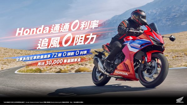 Honda Taiwan 秉持 「The Power of Dreams – How we move you.」 的品牌精神,致力於提供卓越的產品與服務,讓每一位騎士都能在多樣化的產品線中,找到專屬於自己的騎乘樂趣,於9月推出多項購車優惠專案,包含針對搭載劃時代E-Clutch科技的650車系推出「輕鬆就走」方案,以及涵蓋多款人氣車型的「通通零利率 追風零阻力」專案,讓騎士們能更輕鬆且無負擔地實現二輪夢想。
