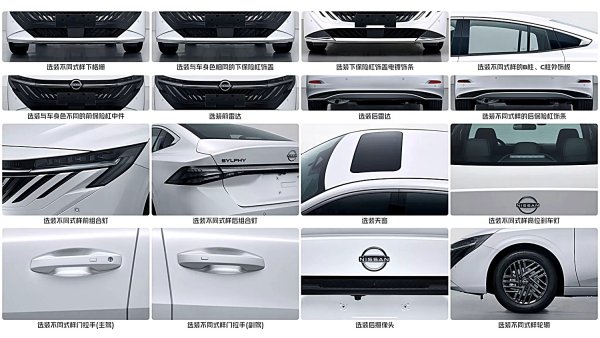 Nissan向中國工信部提交的一份新車上市的申請文件中,凸顯了全新世代軒逸重新設計全新的外觀。在車頭,有一個全寬幅式 LED光條橫跨車頭構成貫穿式車頭燈,與纖細的頭燈相連。就在它們的正下方,似乎是垂直式的日行燈,這種外觀曾經因PEUGEOT的尖牙的車頭相似而引起熱議,而種造型元素現在早已被法國品牌在各車型之間逐一淘汰。