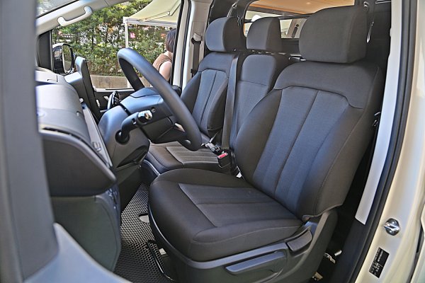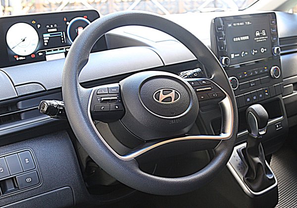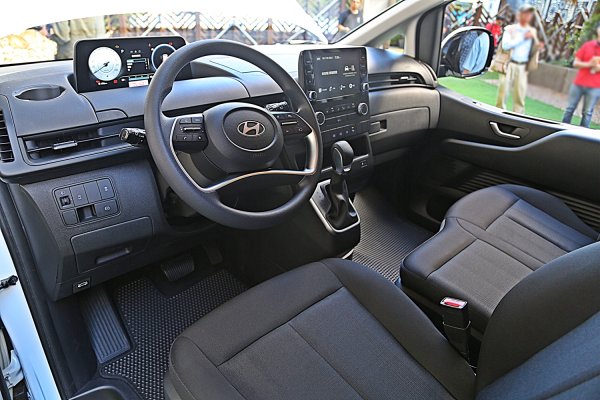 駕駛艙採完全轎式的配置,業者號稱以「豪華遊艇」為思維,前排採商車的三人座配置,並採不織布材質鋪陳,兼顧耐髒汙與舒適性。三人座空間配置搭配低腰線大側窗,創造遼闊視野。車內標配10.25吋全數位儀表板與8吋多媒體觸控主機,支援Apple CarPlay與Android Auto,兼顧商務與舒適需求。STARIA VAN亦首度在大型廂式貨車導入Qi無線手機充電,展現HYUNDAI汽車對便利性的細膩用心。多處收納空間設計,包括中控台、儀表板與天花板置物匣,全面提升日常工作的使用效率。