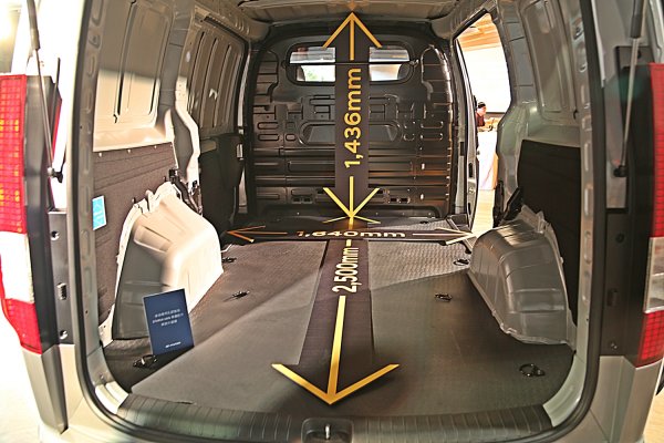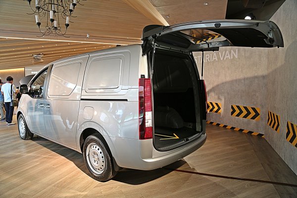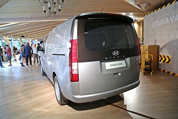 Staria Van承襲星艦流線外觀,以超前設計為傳統方正的商旅市場注入新美學。平滑流暢的車身線條勾勒出前衛時尚的辨識度。後廂為標準的商用廂型車的設計,左右皆採盲窗設計,後廂高度達1,436mm,號稱同級最佳,並具具備2500mm的縱深,以及2640mm的寬度,加上平整化底板,搭配標配兩側滑門,方便駕駛從左右兩側快速上下貨物,即使在狹窄巷弄或臨時停靠環境,也能靈活作業,提升卸貨效率與便利性。
