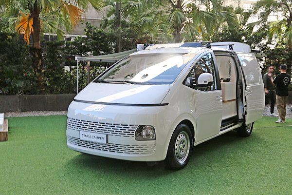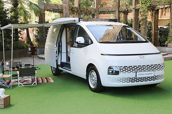 同步登場的Staria Camper露營車,是以Staria Van為基礎,進行露螢休閒化改裝,係與國內改裝業者「輔康企業」合作開發設計,以原有的超大車廂空間,加裝露營休閒的套件,化身「行動小豪宅」。後廂提供全尺寸大床,並具備木質的收納儲物空間,車側有設備無論是長途旅行或週末露營,皆能帶來舒適、便利又安全的旅宿體驗,滿足消費者對戶外生活的全方位需求。