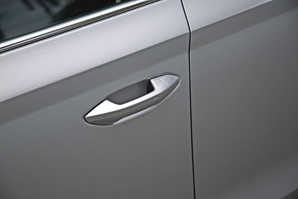 車側維持和RS車型相同的輪廓和上下立體雙摺線的設計,加上錐形的 低風阻後視鏡,連車門把也採低風阻設計,動感十足。車門為Keyless感應式門鎖,具備Open on Approach接近車自動解鎖和WalkAway Locking離去自動上鎖功能。
