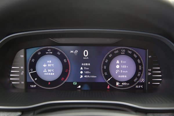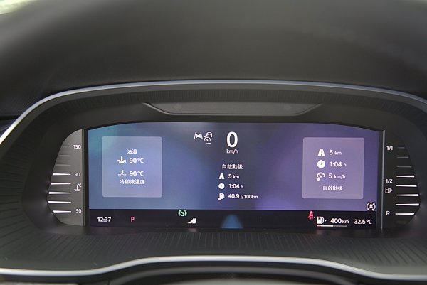 10吋全彩數位儀表,雖尺寸比RS車型略小,但資訊顯示仍十分清晰而好判讀,而且可依個人駕乘需求或偏好,設定顯示內容,儀表顯示模式和風格包括傳統雙環儀表,或全地圖或道路虛擬實境顯示系統,亦或只有最重要數據顯示的基本模式等四種式。而顯示數據與內容也可依個人需求設定。儀表前方是HUD投影式的抬頭顯示器,不僅提供車速和車道偏離等行車資訊,整合導航系統,也提供轉向提示等顯示,功能相當齊備。