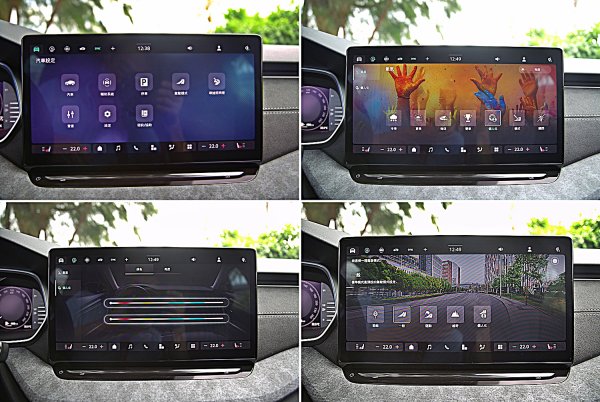 懸浮式中控螢幕和RS車型相同,都是從原來的10吋觸控式螢幕升級為13吋規格,頁面有新的圖像設計,操作起來更直覺,會使用手機的人就可以馬上上手,中控內建多媒體,整合藍牙、導航、行車電腦、廣播、環艙監控和影音播放等功能,中控主機也支援無線Apple CarPlay與Android Auto功能。另外還可以在選單中自訂常用功能,整個螢幕解析度也比以往更好,觸控操作比以往更流暢,另外還可以在選單中自訂常用功能,中控螢幕下緣也有整合常用功能的快捷虛擬按鍵的Touch Slider數位控制列,而無需切換螢幕頁面,這一列快捷功能也可以自訂項目,螢幕最上緣也有我的最愛常用項目快捷按鍵 ,最多可設定五個自選功能。