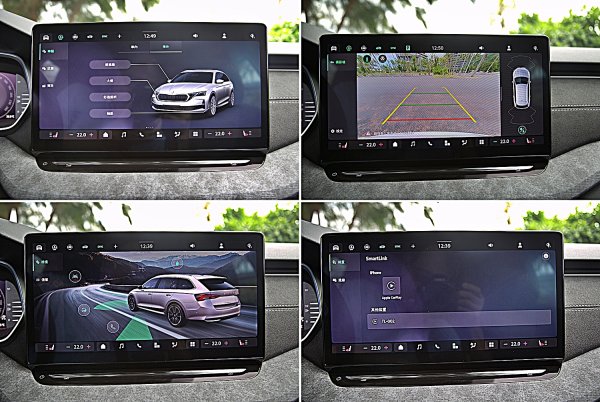 中控下方的空間配置和功能,都和我們先前試駕的Octavia Combi RS完全相同,保留一排常用和必用的實體功能按鍵,包括駕駛模式、駕駛安全輔助系統按鍵和中控鎖等,整合空調按鍵,車主可以依習慣而快速操作。全車系仍標配三區恆溫空調,空調的調控是整合於中控螢幕選單之中,除了基本的風量、溫度調整方式之外,還可車內空氣品質,選擇智慧空調或淨化空氣模式,快速改善車內空氣品質。