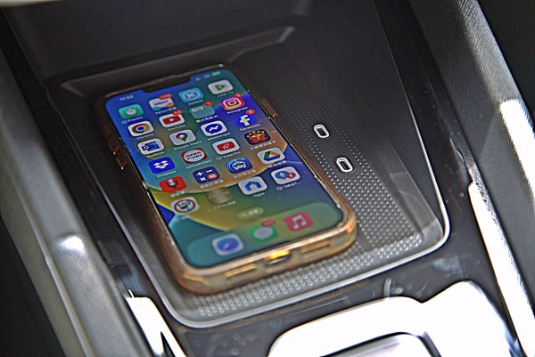 中控下方配置附有雙Type-C的USB-C插槽和智慧手機無線充電板,USB提供比之前更大的充電功率,達到 45 瓦,具備快充功能,而內後視鏡背面仍保有 15 瓦充電功率的 USB-C 插槽可供行車紀錄器使用,而手機充電板也有15瓦的充電功率。後座的兩 個Type-C插槽充電功率也同樣升級為45瓦。