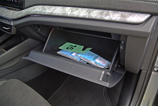 維持品牌Simply Clever智慧化座艙的實用功能與設計,扶手下方有方正且夠深的置物箱,而前後座都有豐富的收納與置物功能,包括V形開口的前座手套箱,置物容量夠又不會影響前座乘客乘坐舒適性,可以直接開關取置物。門側置物格也特長且深,方便收納,而前座椅背置物袋也比照SKODA家族成員,有袋中袋設計,內有小的手機收納袋,而車門夾層也有雨傘收納格,雨天維持車內乾燥。