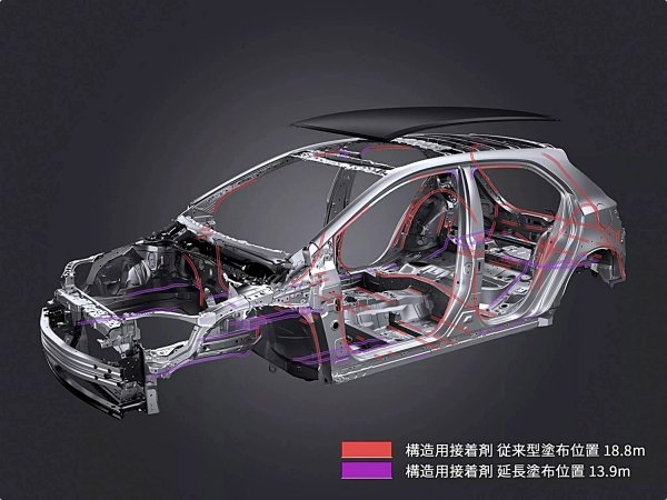升級的 2026 年式GR Corolla,借鑒Gazoo Racing在日本Super Taikyu 超級耐久系列賽的 實戰經驗,實現了大老闆豐田章男的信念:賽車運動是打造更優質公路車的理想試驗室 。為此,工程師為車身額外塗抹長達 13.9 公尺的結構膠,使總長度達到 32.7 公尺。這些膠合主要集中在前車身、地板和後輪罩周圍,在不增加明顯重量的情況下,使底盤更加穩固。