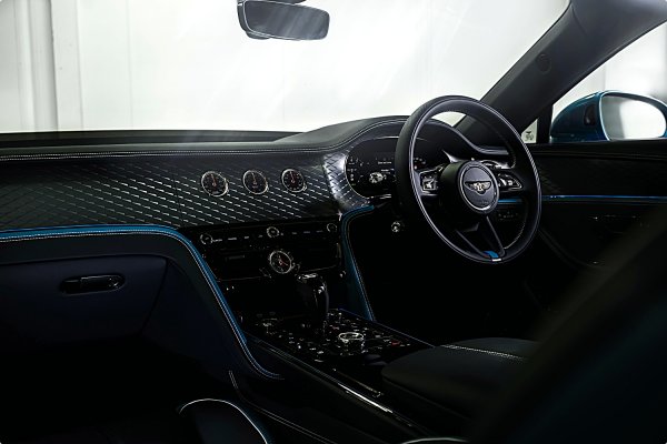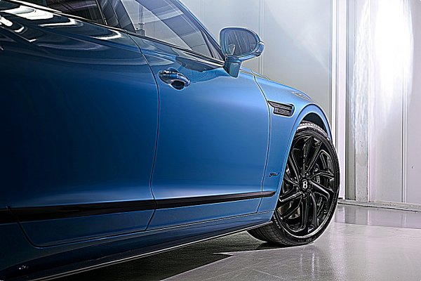 全新Flying Spur的漆面是從車頭鮮豔的托帕石藍(Topaz Blue)再過渡到車身後方的深色的溫莎藍(Windsor Blue ),漸變過程發生在車身中段,包括車門、車門檻和車頂。整個過程需要兩位技藝精湛的噴塗技師花費近 60 個小時才能完成,首先在車身前部和後部噴塗各種顏色。漸層色從車身中心開始,分階段進行,使用以傳統調色方法調色的油漆,以達到漸層變化的效果,在極端情況下,漸層會在車身上產生對稱效果。